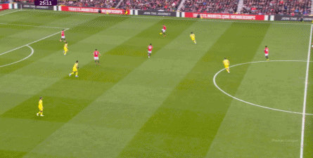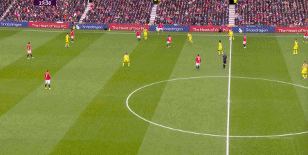 其次,卡里克选择了三个半思路,正如上一场一样,在有球环节,达洛特的位置相对靠后,更为注重保护后场。